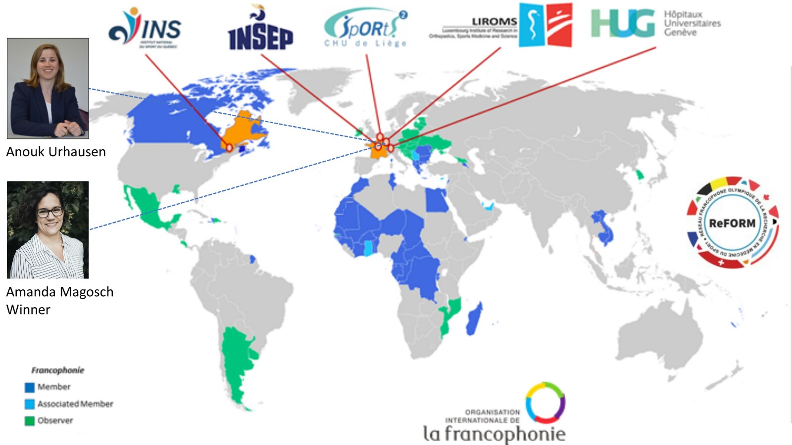 Amanda Magosch from LIROMS won the award for the best young researcher in an online conference organized by ReFORM, the French consortium for sports health research recognized by the International Olympic Committee along with another researcher. This consortium includes the National Sports Institute of Montreal, the University of Liège, the University of Geneva, INSEP in Paris and us. The centres had selected their 11 best researchers, for the occasion.